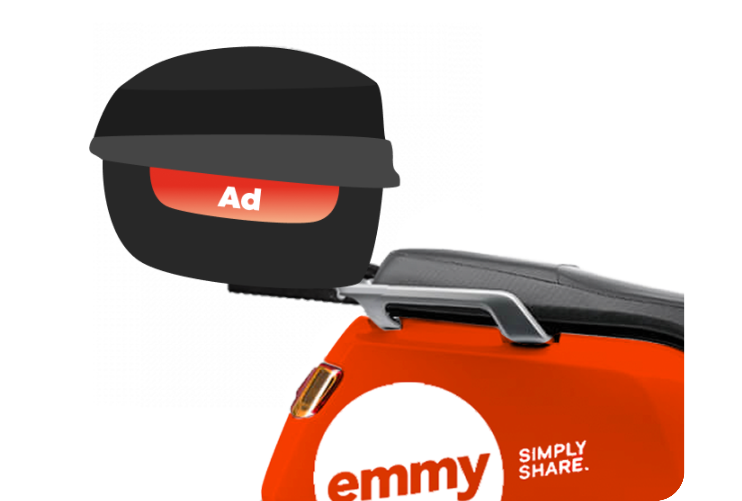 Redefine urban advertising with emmy. Transform our mopeds into a moving canvas that turns heads and sparks curiosity – connecting with users directly and making a lasting impression on the cityscape.