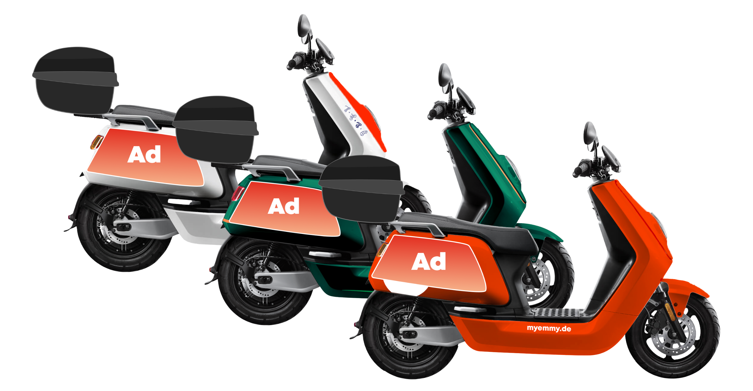 Ad placements on our YADEA mopeds are open for booking in Hamburg and Munich. With the emmy fleet riding through the busiest parts of the city, your brand or ads will be seen where it matters most.